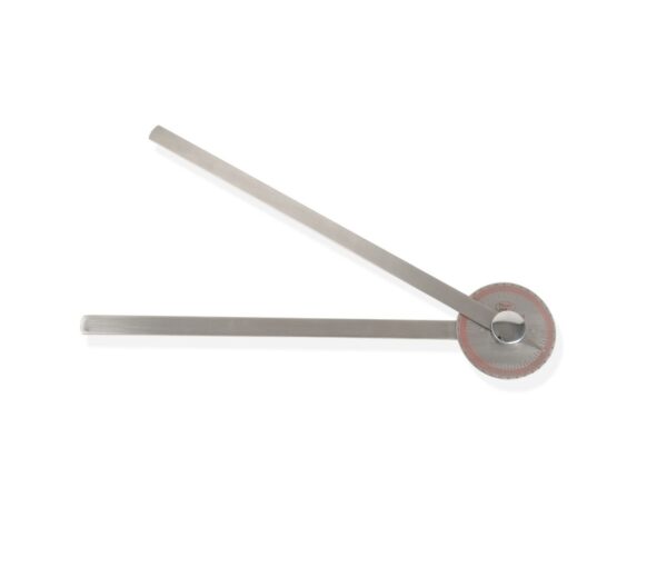 Ky goniometër ka dy shkallë të kundërta 180° dhe një shkallë 360°, të gjitha të shënuara në rritje prej 1°.