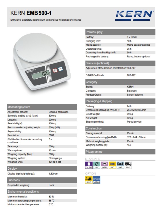 Peshore Kern EMB 500-1, leximi 0.1gr , max 500gr